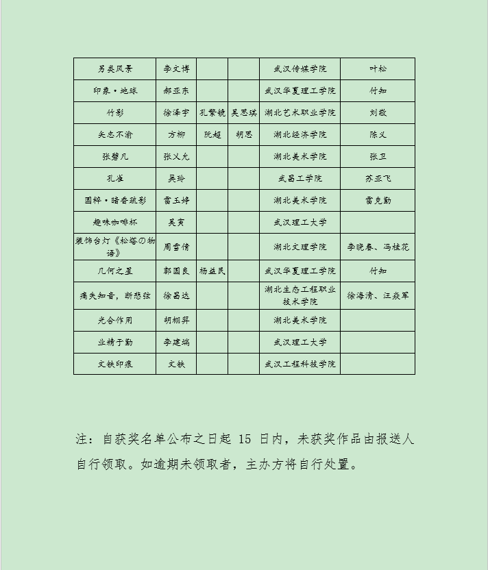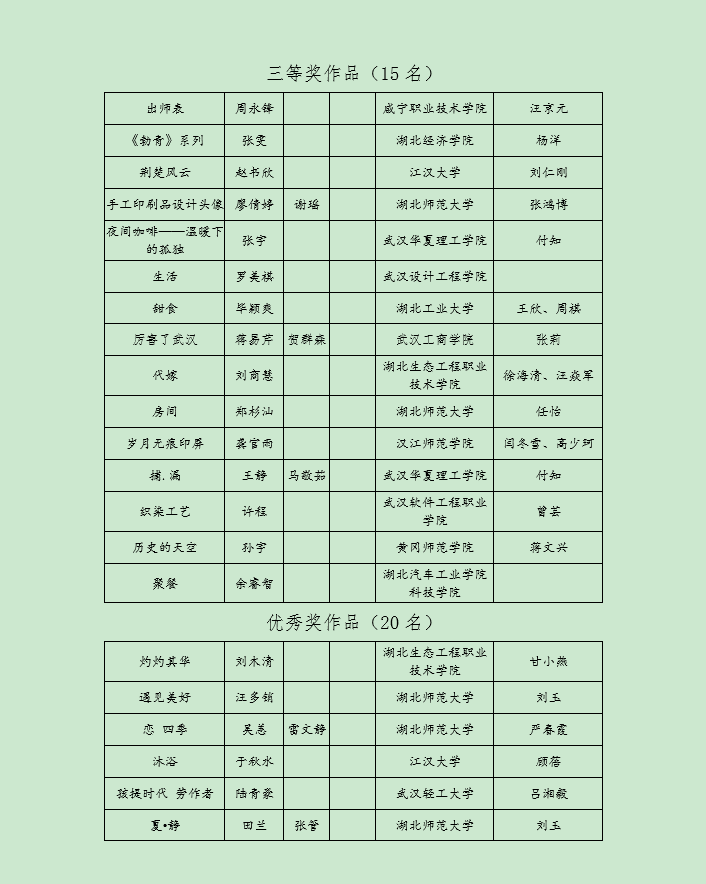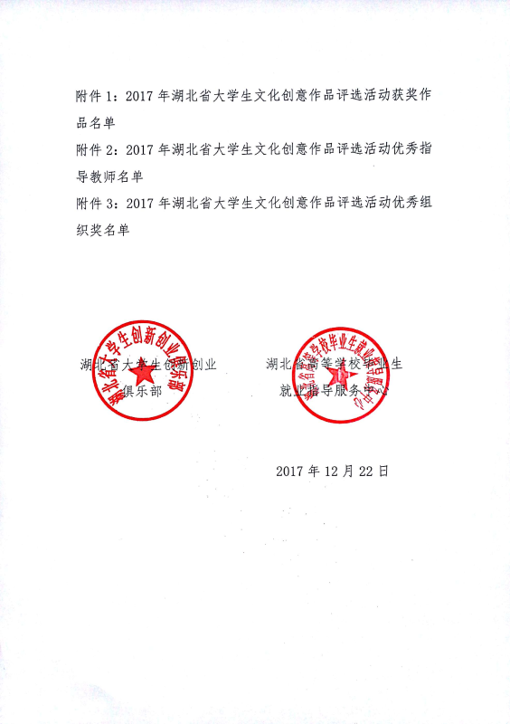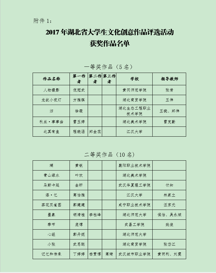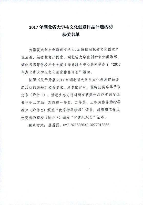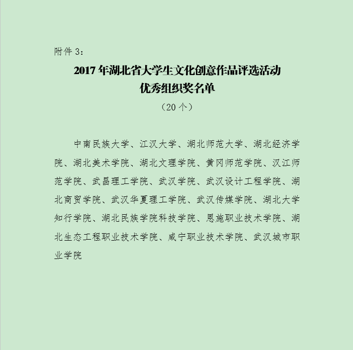 2017年湖北省大学生文化创意作品评选活动获奖名单